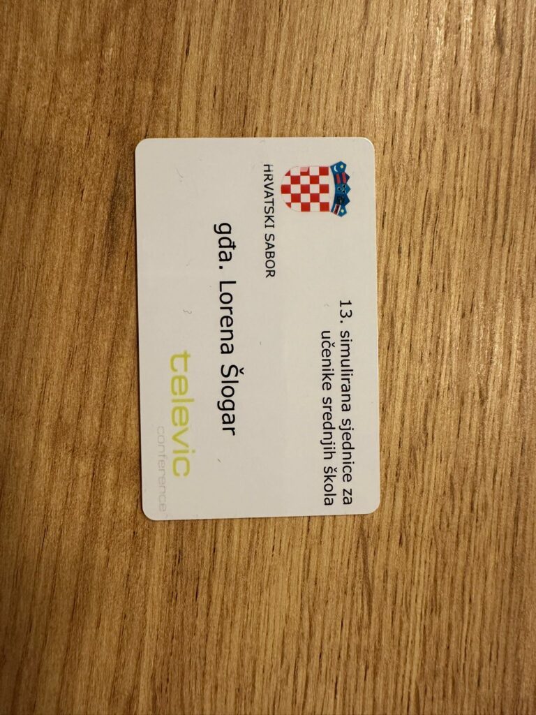 „Bilo mi je jako lijepo sudjelovati na simuliranoj sjednici Hrvatskog sabora za učenike i uživala sam u cijelom iskustvu. Ponosna sam što sam mogla predstavljati našu školu te mi je bila velika čast biti dio toga događanja.“ dojmovi su naše Lorene.