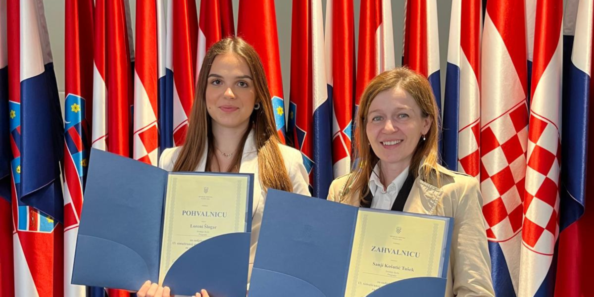 Učenica Lorena Šlogar (3.a) predstavljala je 20. travnja 2026. našu školu na 13. simuliranoj sjednici Hrvatskog sabora za učenike srednjih škola u pratnji mentorice prof. Sanje Košutić Tušek. Simulirana sjednica za učenike srednjih škola održala se u organizaciji saborske Službe za građane, te je na njoj sudjelovalo 162 učenika i učenica iz 57 srednjih škola iz svih krajeva Hrvatske. Na dnevnom bio je Prijedlog strategije demografske revitalizacije Republike Hrvatske do 2033. o kojem su učenici/zastupnici, simulirajući rad sjednice, iznosili stajališta nadležnih radnih tijela, raspravljali u ime klubova zastupnika ili pojedinačno, replicirali, glasali o amandmanima te na koncu i glasali o prihvaćanju Prijedloga strategije.
