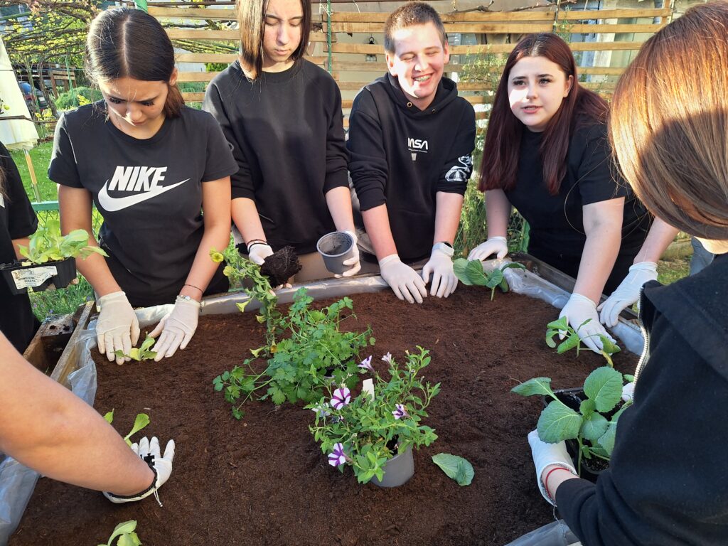 Uz puno entuzijazma i timskog duha, učenici su zajedničkim snagama uredili i zasadili vertikalni vrt koji će oplemeniti dvorište doma te pridonijeti stvaranju zelenijeg i ugodnijeg okruženja za sve korisnike. Sadnjom različitih biljnih kultura učenici su imali priliku naučiti više o važnosti očuvanja prirode, urbanoj poljoprivredi te odgovornom odnosu prema resursima.