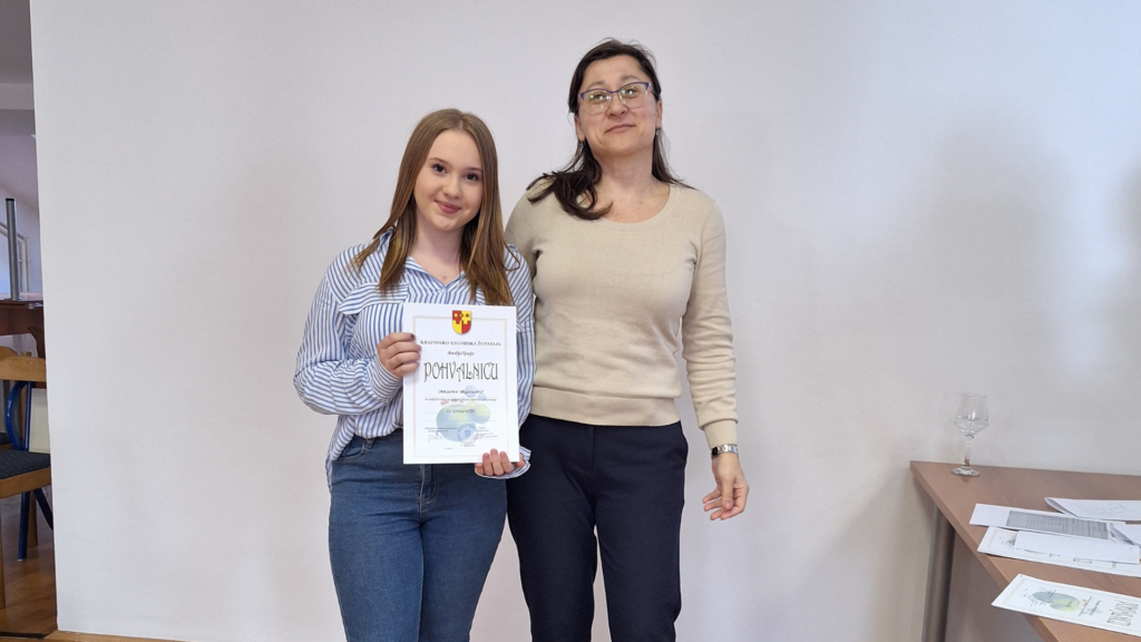 U A kategoriji (strukovne i umjetničke škole) iz naše škole natjecalo se troje učenika i postigli su sljedeći uspjeh: Marin Ježek (1.b) 5. mjesto, Marta Ratešić (1.z) 3.mjesto i Emanuela Hlupić (1.d) 1. mjesto.